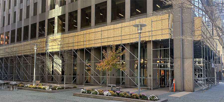 Universal is experienced in manufacturing pedestrian canopy products. As with all of our scaffolding, our panels go through a rigorous quality inspection process ensuring the highest quality product for our customers. Our pedestrian canopy protection meets or exceeds most city requirements for sidewalk protection.